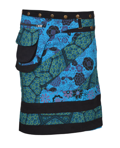 Tattopani cotton all over floral print button closure wrap mini skirt. Side zipper pocket. 100% soft cotton. Colorful and uniquely design.