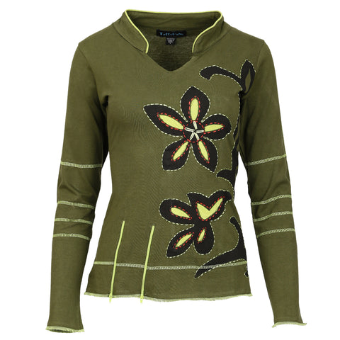 Full Sleeve Top with Chinese Collar design, with embroidery work in the front. Suitable for all seasons