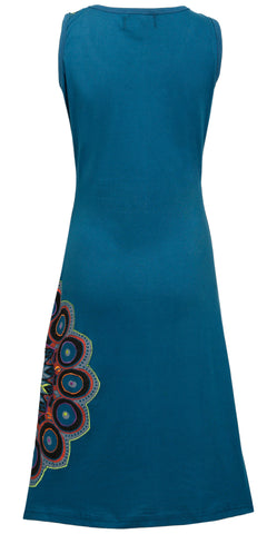 Sleeveless Dress With Side Feather Design Patches.