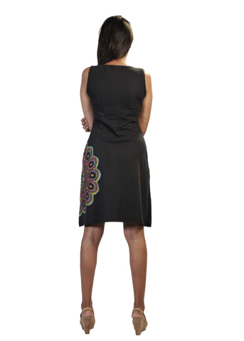 Ladies sleeveless dress with colorful print and side feather design patches. Pair up with the flats, heels or boots. Perfect for the beach day or as an evening wear. Enhance the style just simply by adding different accessories with this dress. Style it as you prefer!!!