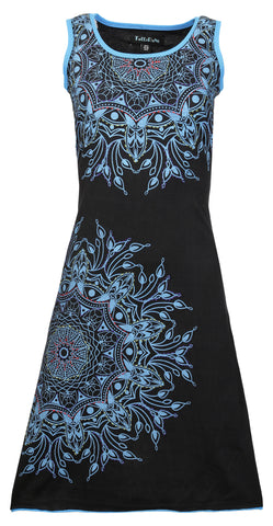 Front Mandala Print & Embroidery Sleeveless Dress.