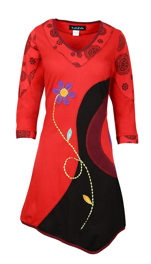 Women's 3/4 sleeve dress with multicolored mandala pattern print & flower embroidery .Suitable for all season .Soft cotton material evening dress summer dress .Hand embroidery and stitch