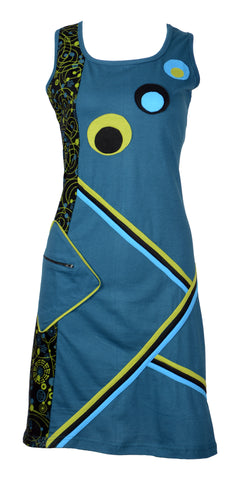 Colorful geometrical design patch sleeveless dress. Good to go as a casual wear for a beach day or as an evening wear. Pair them with the flats, flipflops or heels, style as you prefer. Unique and Fashionable.