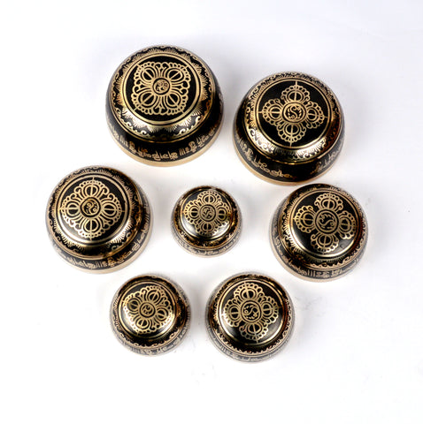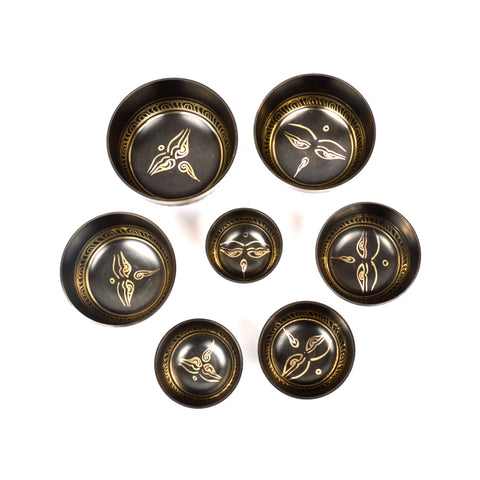 Set of 7 Chakra Singing Bowl. These singing bowls are between 3" to 5.1" in diameter and weigh 2.5 kg together.