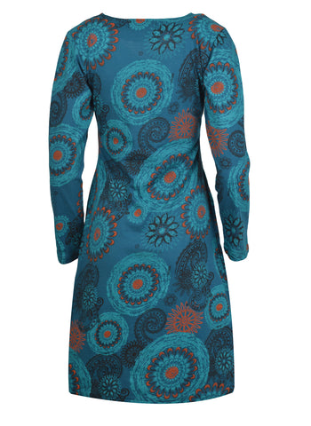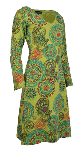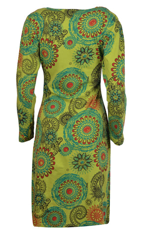 Tattopani women's long sleeve dress all over floral print design. 100% cotton for comfortable and soft feeling. Uniquely hand sewn embroidery.