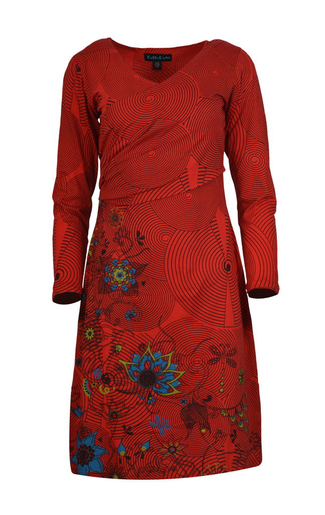 Tattopani women's long sleeve dress with floral embroidery . V-Neck Design. 100% cotton for comfortable and soft feeling. Uniquely hand sewn embroidery.