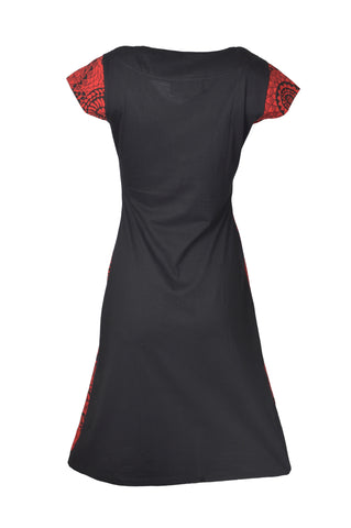 MULTICOLORED SLEEVELESS DRESS FOR LADIES WITH EMBROIDERY AND PATCH DESIGN. SUITABLE FOR SUMMER. STRETCHABLE COTTON