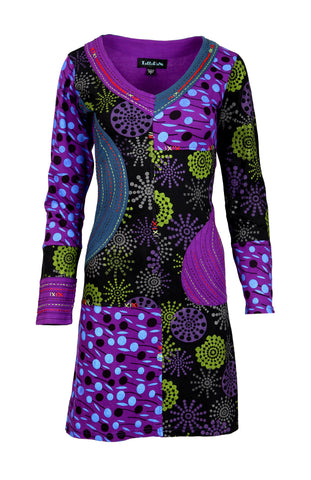 LONG SLEEVED DRESS FOR LADIES WITH EMBROIDERY. SUITABLE FOR WINTER. STRETCHABLE COTTON. WITH ONE SIDE POCKET.