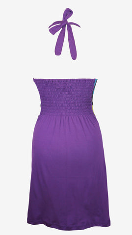 This halter dress is stretchable cotton comes with hip tie detail. Elastic back gives easy fit.