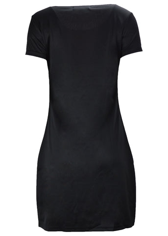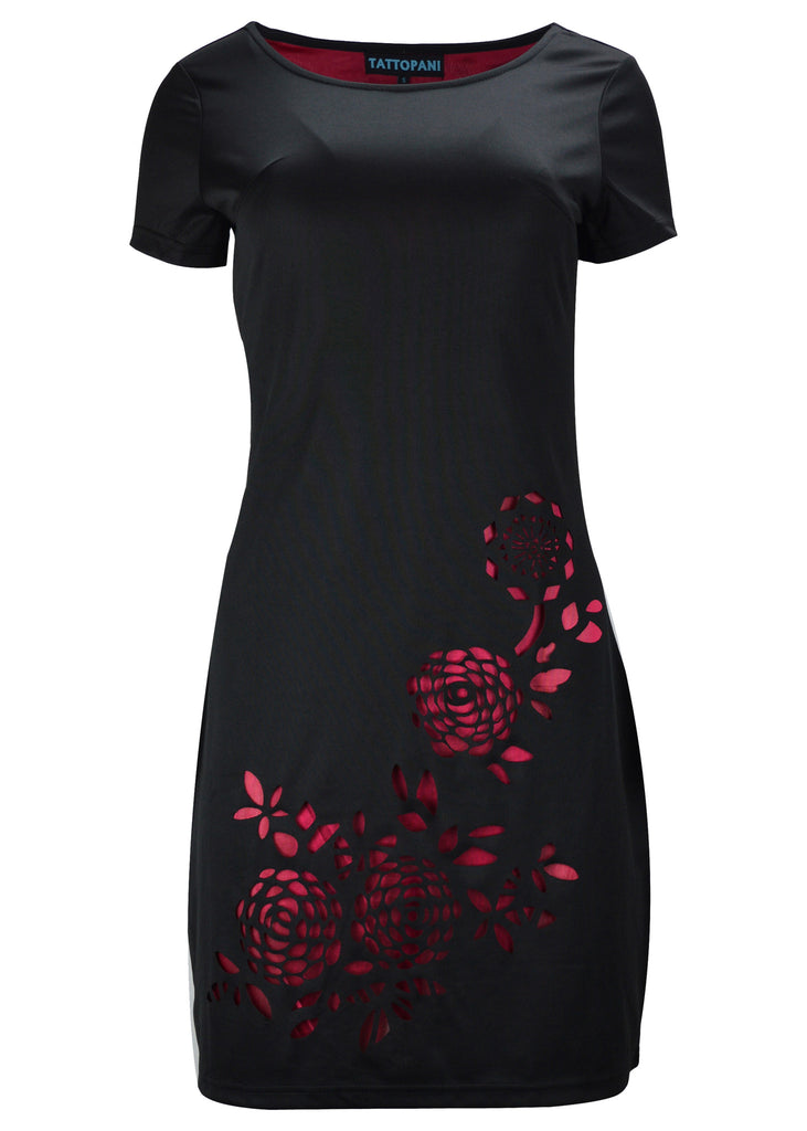 Women's black short sleeved dress with flower pattern print