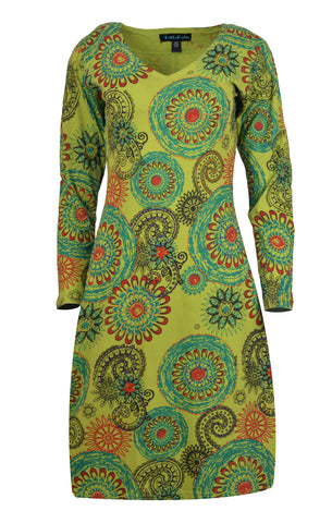 Tattopani women's long sleeve dress all over floral print design. 100% cotton for comfortable and soft feeling. Uniquely hand sewn embroidery.